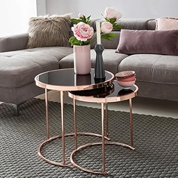Finebuy Design Couchtisch Deco Glas Kupfer Tisch 2er Real
