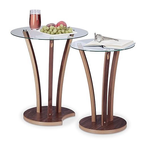 Relaxdays Beistelltisch Rund 2er Set Glastisch Mit Holzbeinen 2
