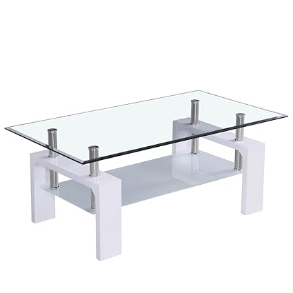 Relaxdays Couchtisch Glas Rechteckig Glasplatte Kleine Ablage