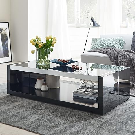 Moebella Couchtisch Schwarz Hochglanz Mit Glasplatte Evo 130x70cm