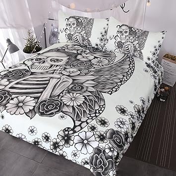 Blessliving Gothic Totenkopf Bett Set Retro Schmetterling Rose
