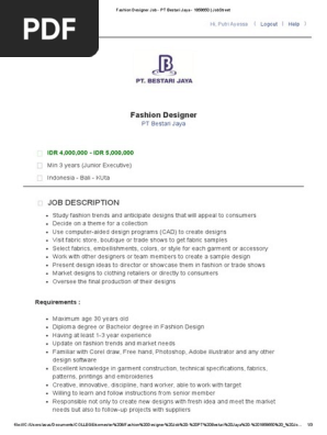 Fashion Designer Job Pt Bestari Jaya 1858650 Jobstreet