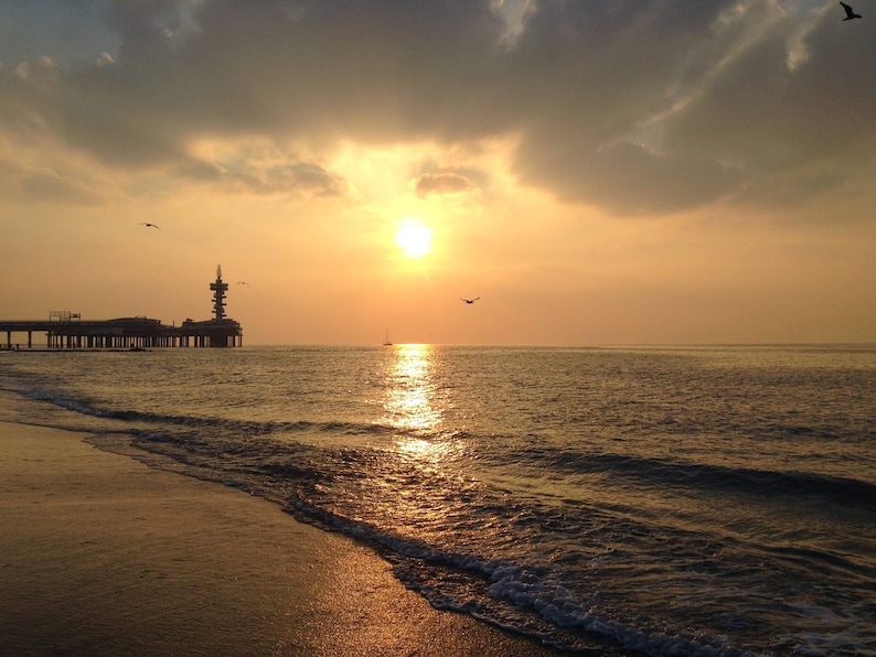 Coucher De Soleil Avec Une Surface De La Mer Calme Etsy