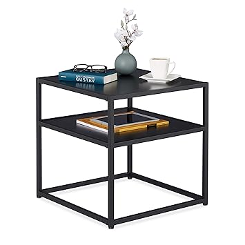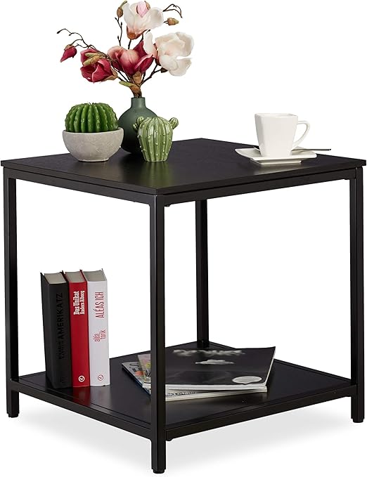 Relaxdays Beistelltisch Schwarz Quadratischer Couchtisch Metall