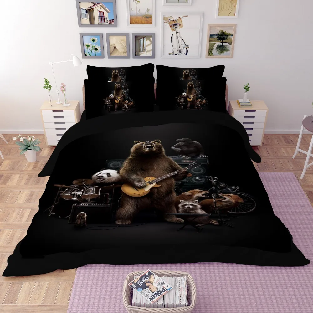 3 4pcs 3d Animal Panda Bear Music Band Bedding Set Twin Full Queen