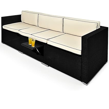 Gartensofa Schwarz Polyrattan Lounge Outdoor Rattan Sofa Garten