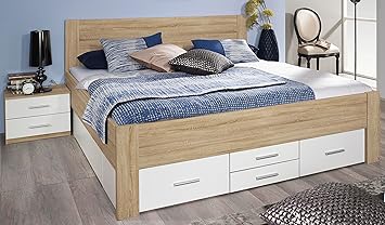 Rauch Bett Mit 6 Schubkasten Eiche Sonoma Alpinweiss 140 X 200 Cm