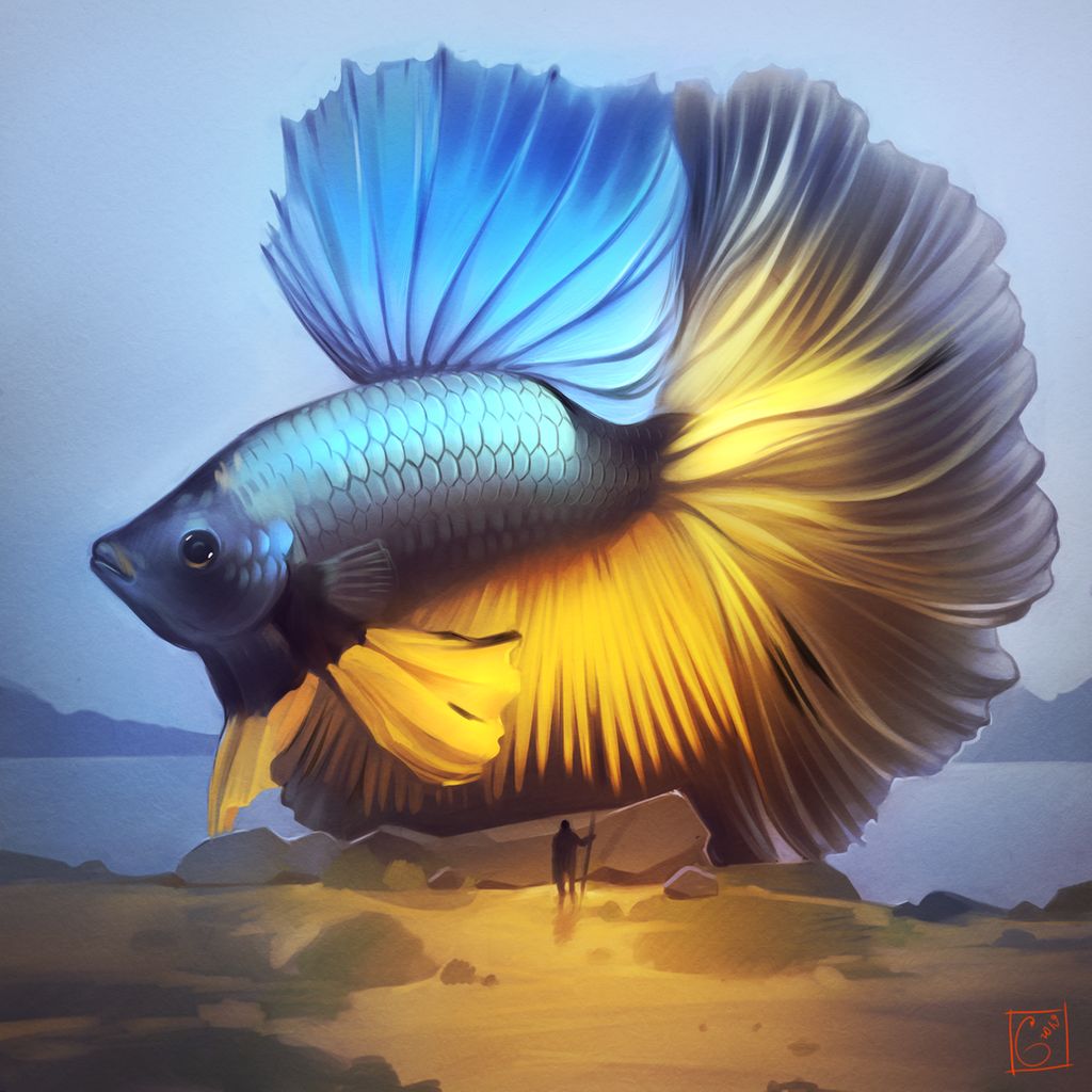 Signed Painting Of A Dragon Betta Fish From Bali Dragon Betta