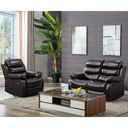 Brown Bonded Leather Match Modern Reclining Sofa Loveseat Set