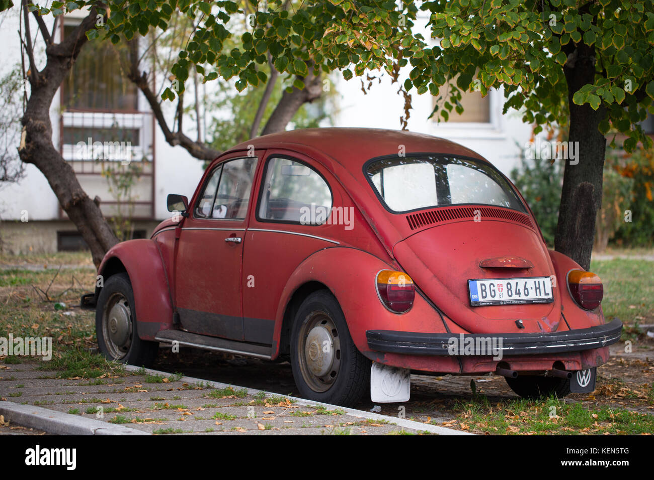 Red Old Volkswagen Beetle Parked In Belgrade Serbia Stock Photo
