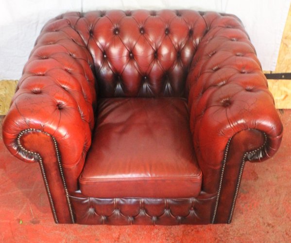 Red Leather Chesterfield Armchair 1960s For Sale At Pamono