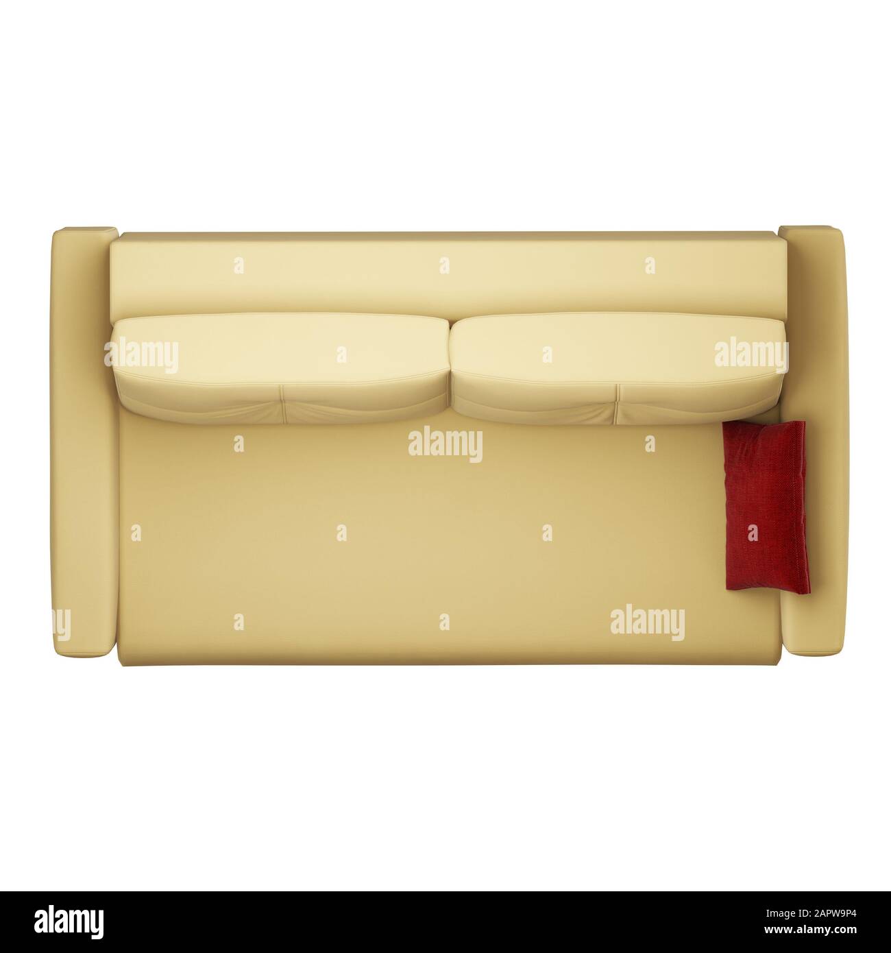 Yellow Sofa With A Red Pillow On A White Background Top View 3d