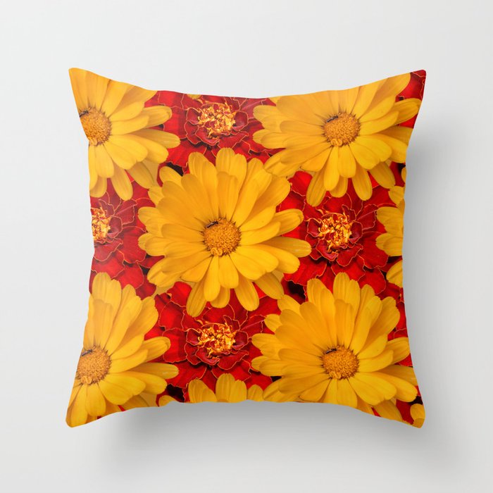 A Medley Of Red And Yellow Marigolds Throw Pillow By
