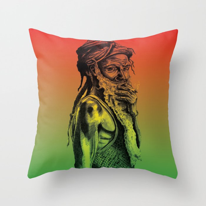 Old Rastafarian Man Smoking Against Red Yellow Green Background