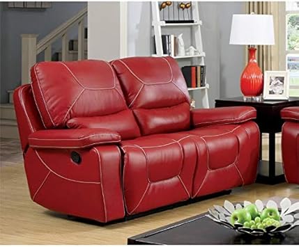 Zimra Contemporary Reclining Sofa Loveseat Set In Red For Red