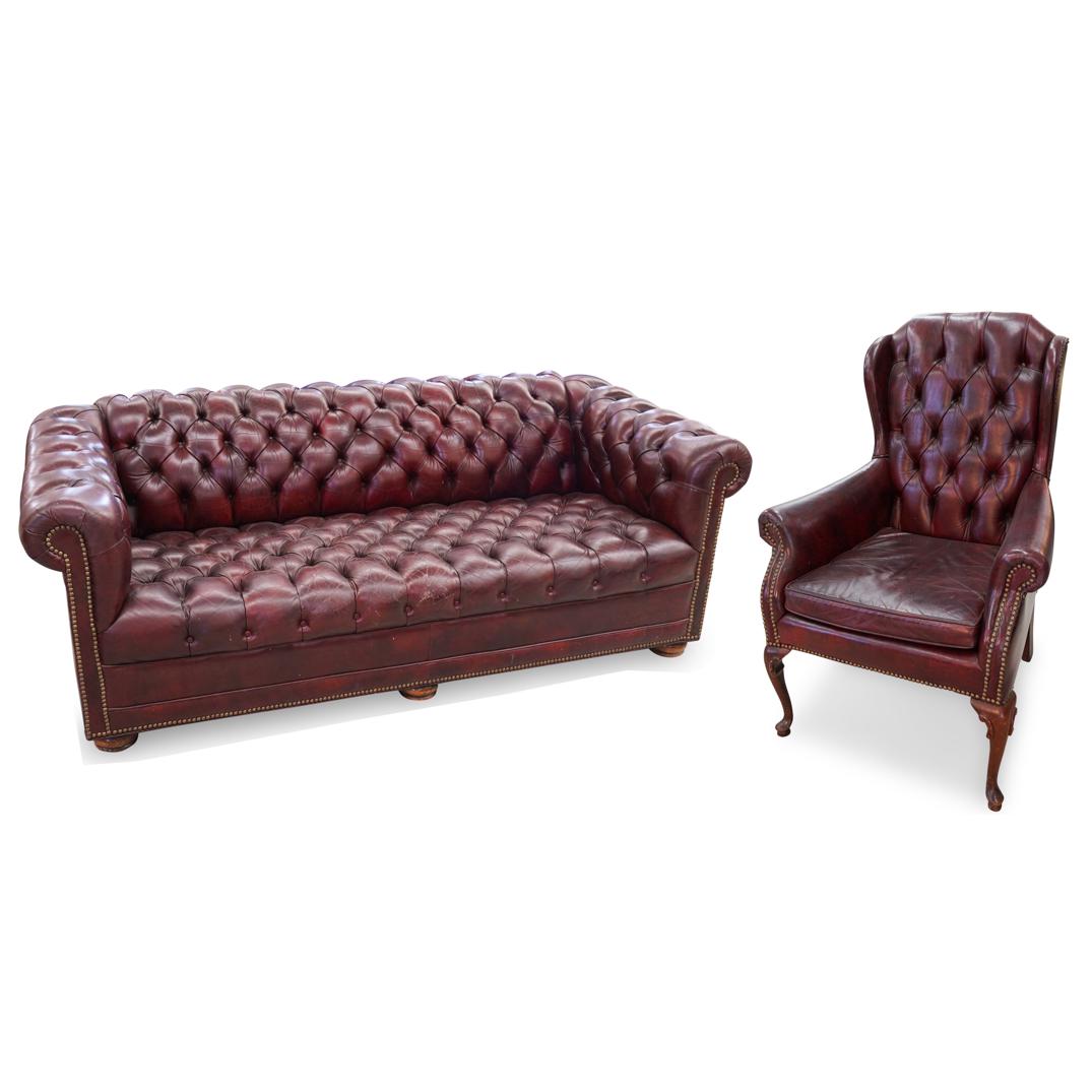 Sold Vintage English Distressed Red Leather Tufted Chesterfield