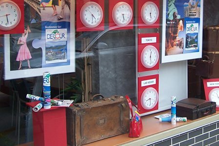 Schaufensterdekoration Visual Merchandising Reiseburo In