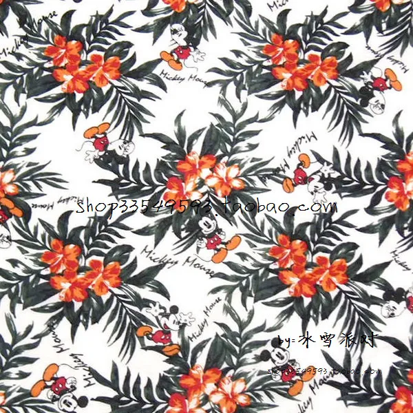140x100 Cm Mickey Maus Und Retro Hawaii Hibiskus Weiss Baumwolle