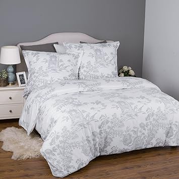 Bedsure Vintage Bettwasche 155x220cm Weiss Grau Bettbezug Retro