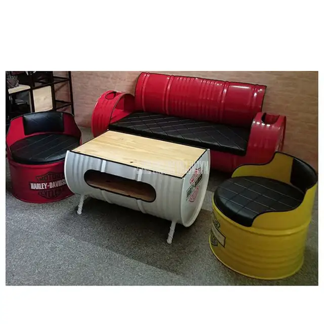 Creative Oil Bucket Shape Combination Sofa Set Stool Tea Table