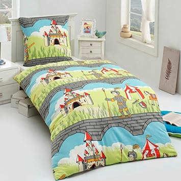 Bettwasche 135x200 Cm Baumwolle Kinder Ritter Burg Rustung Jungen