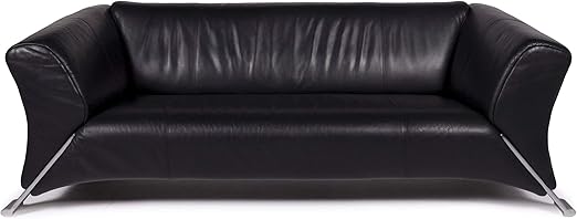 Rolf Benz 322 Leather Sofa Black Three Seater Couch Sanaa