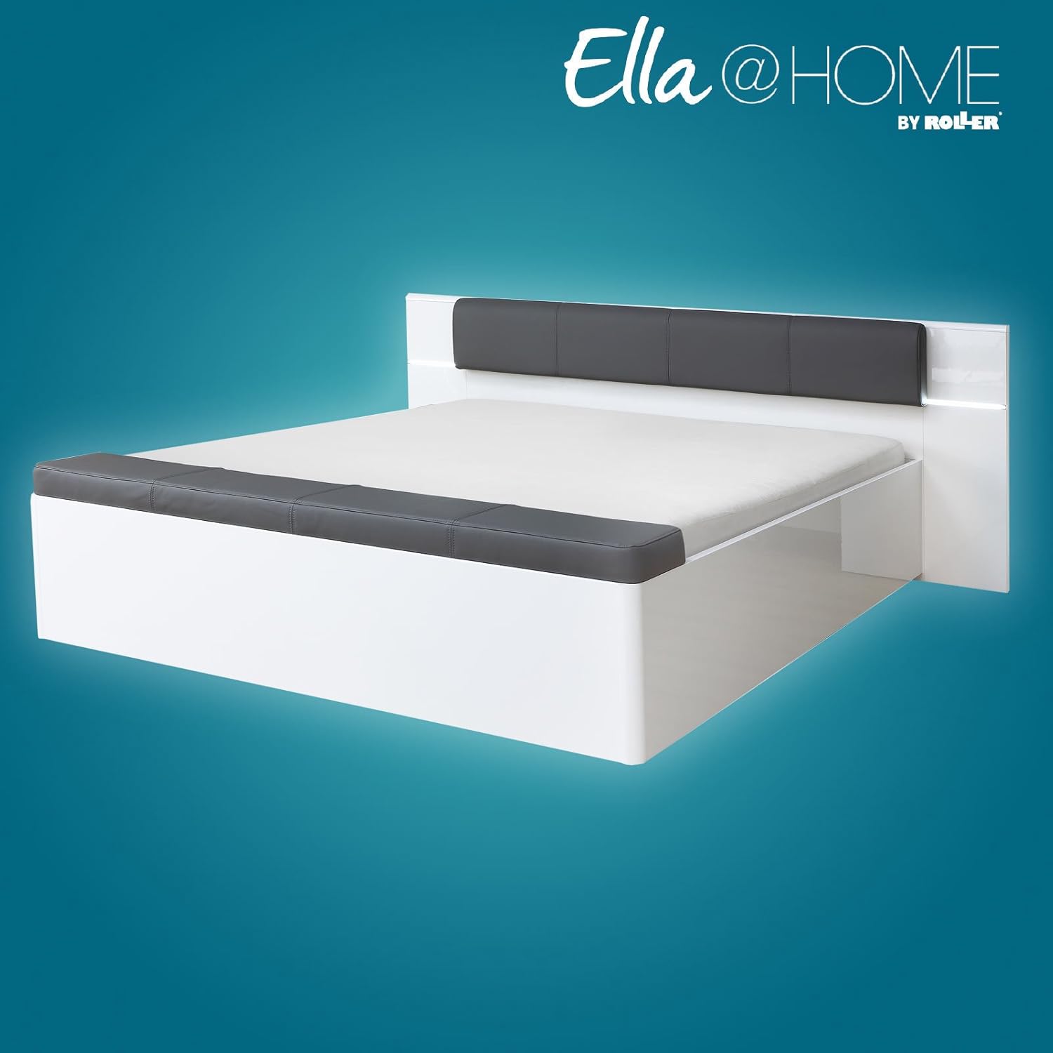 Ella Home Bett Grau Weiss Hochglanz Kunstleder Beleuchtung