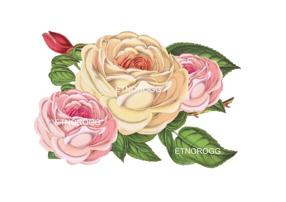 Victorian Rose Branch Clipart Png Digital Overlay Retro Etsy