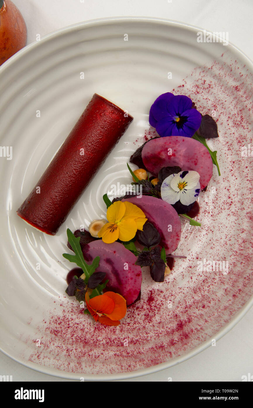 Rote Bete Mousse Mit Mandelbluten Und Blauschimmelkase Lizenzfreie