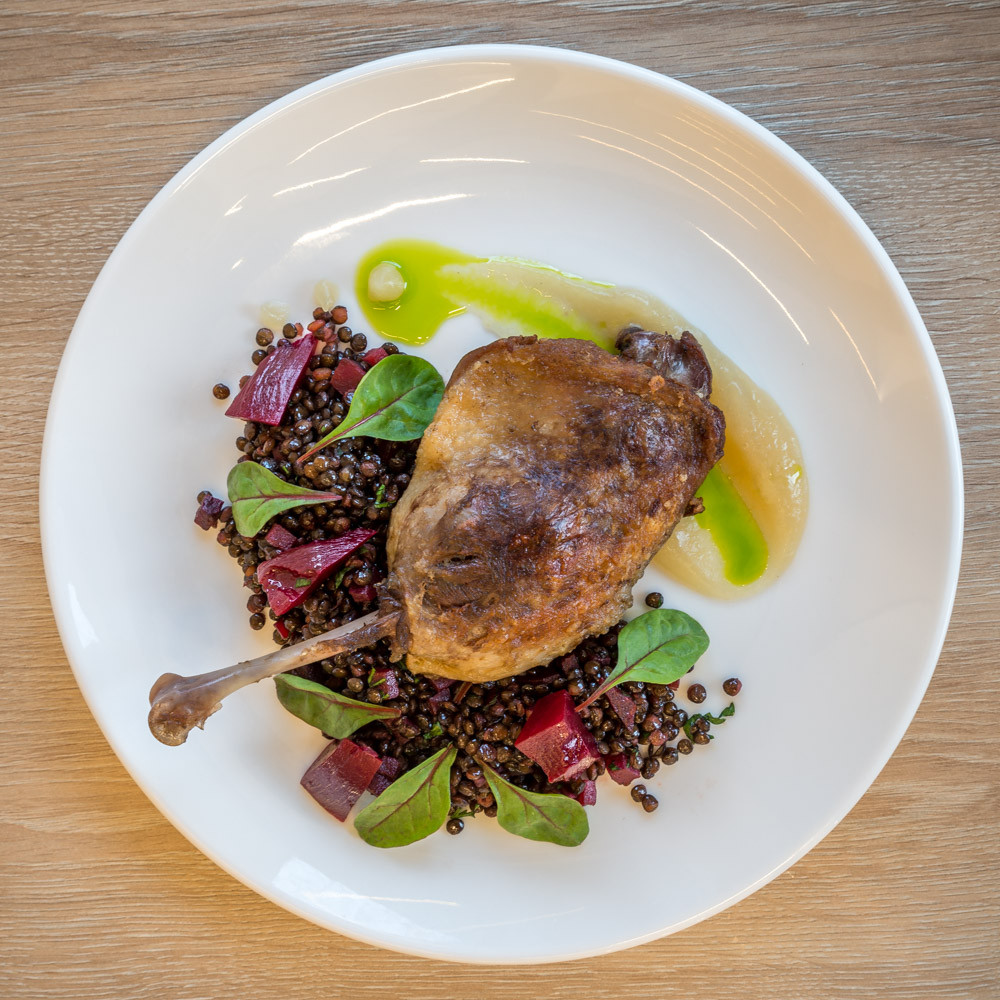 Confit Ente Mit Rote Bete Wurzeln Linsen Salat