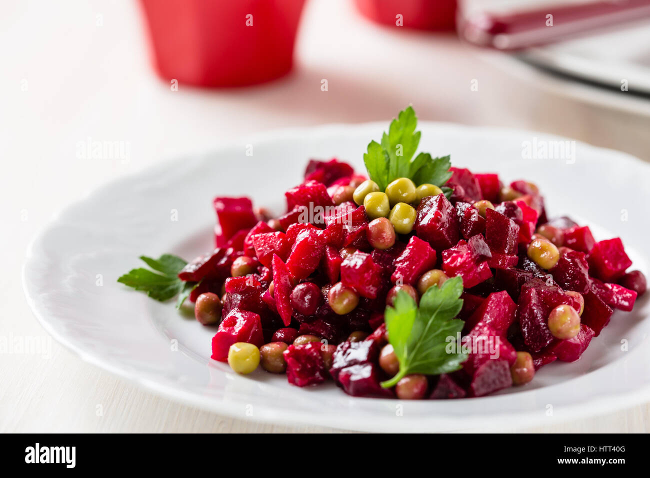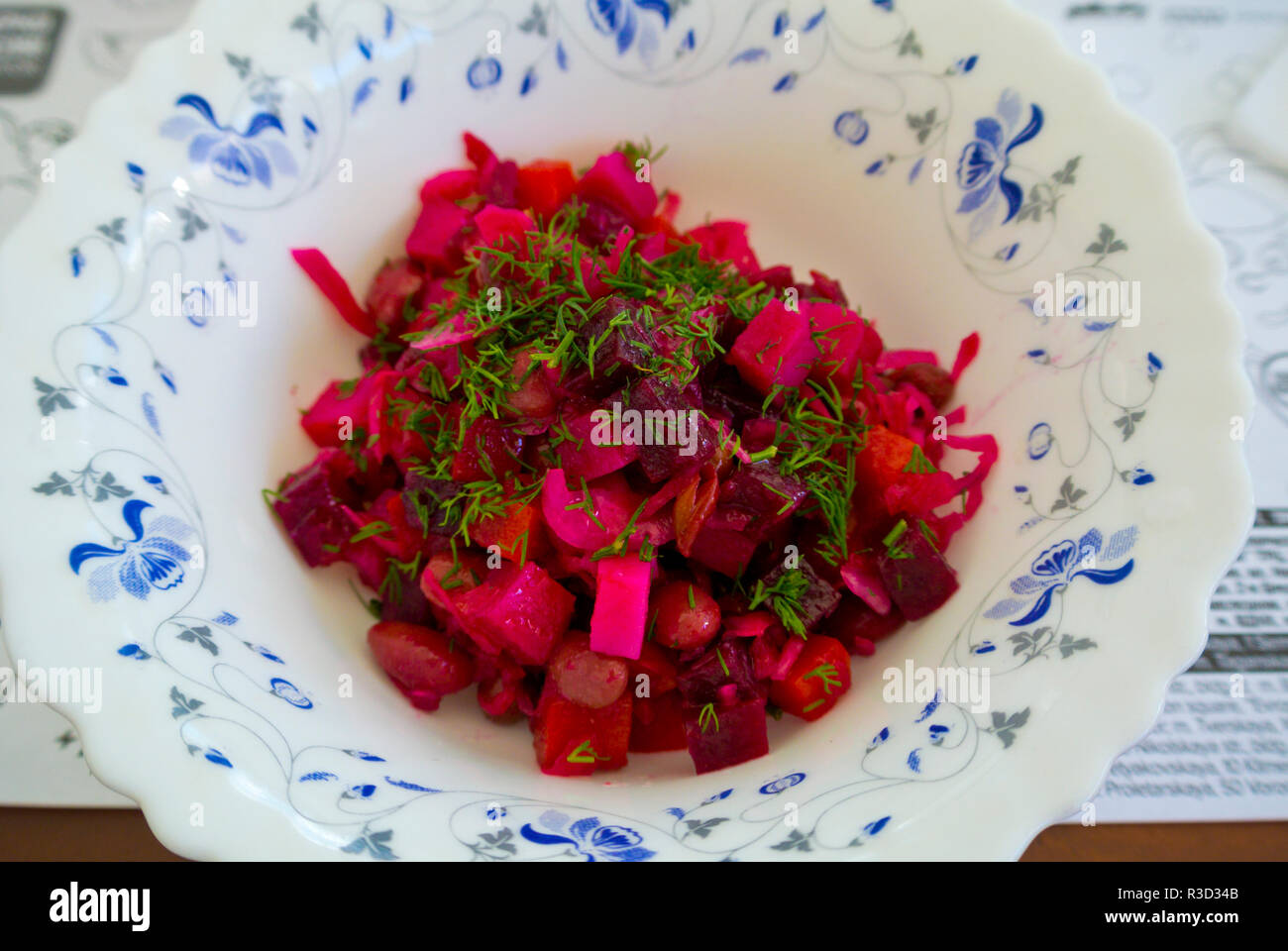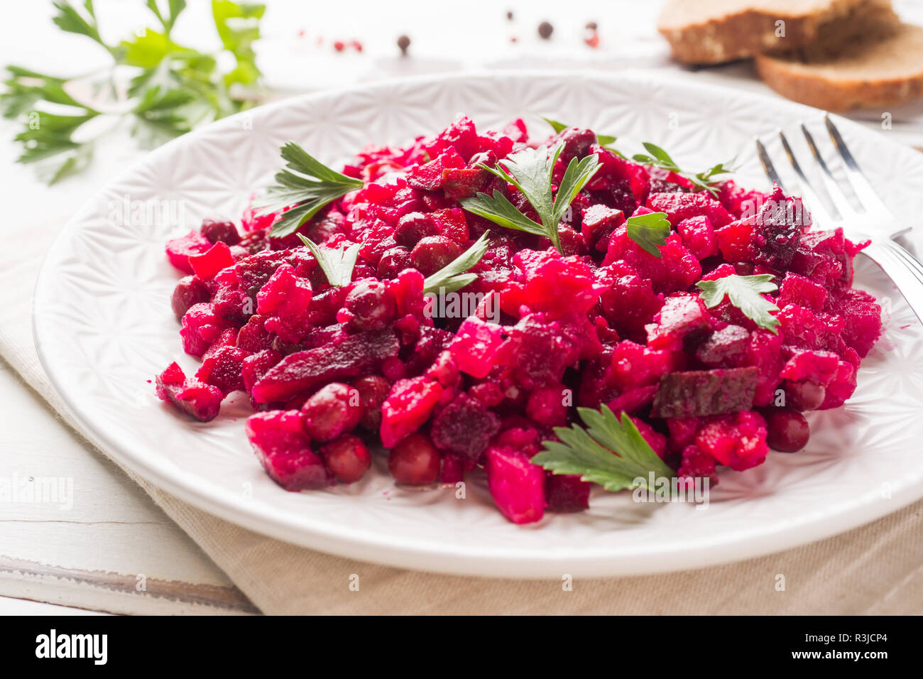 Russischer Rote Bete Wurzeln Salat Vinegret Auf Platte Stockfoto