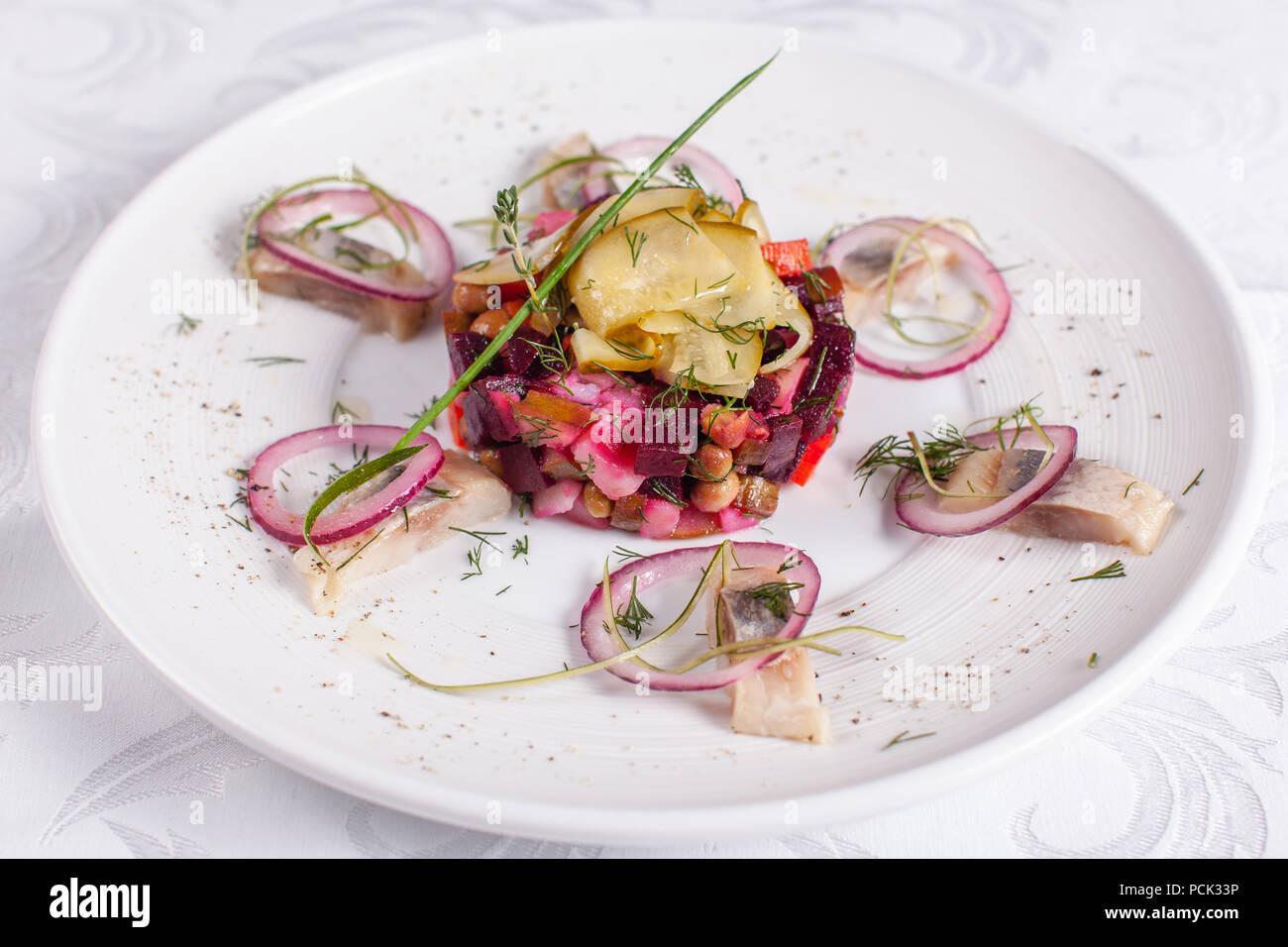 Russischer Salat Mit Heringen Und Rote Bete Wurzeln Stockbild
