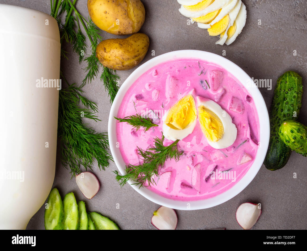 Kalte Suppe Mit Ei Rote Bete Gurke Kartoffeln Und Gemuse Stockfoto